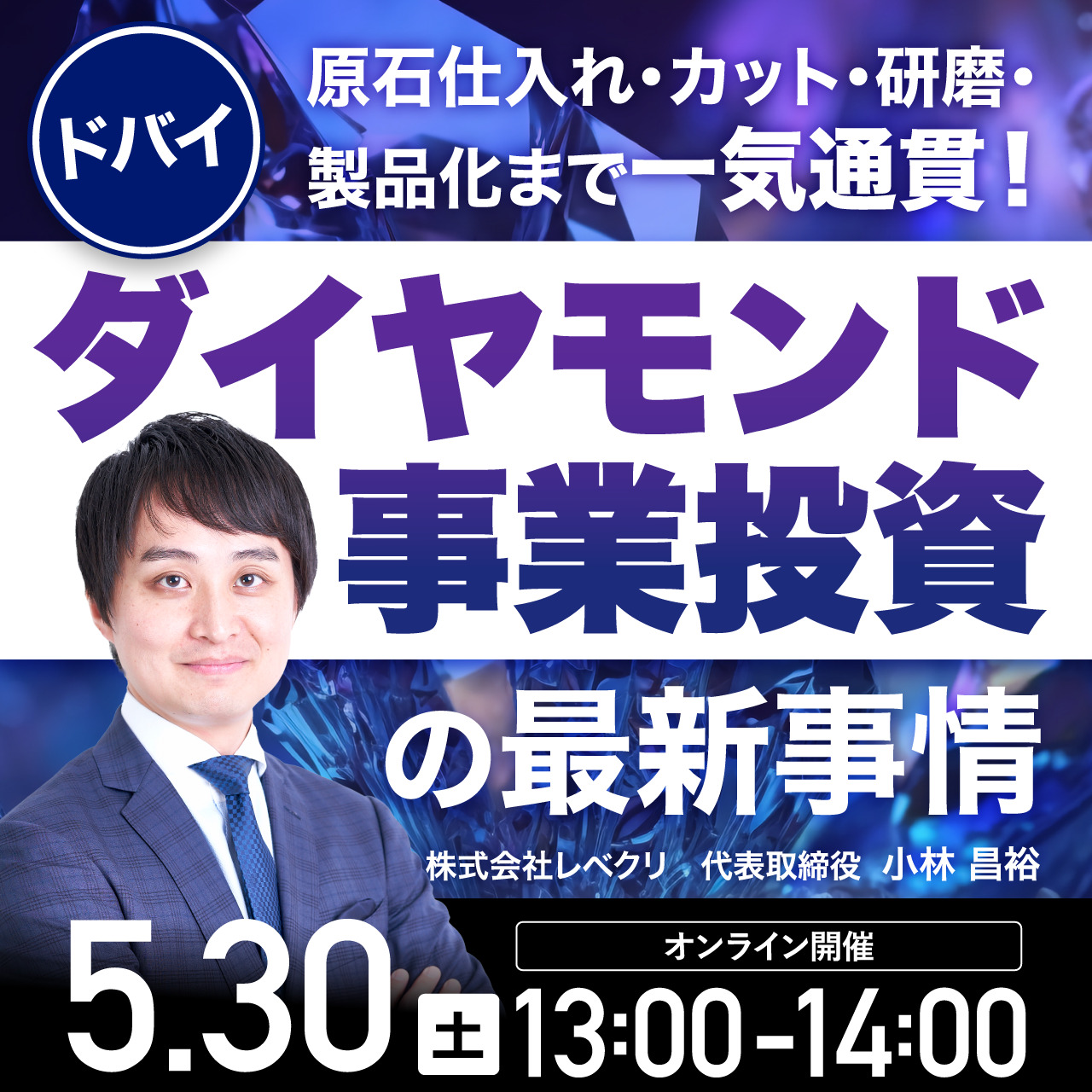 通常、ダイヤモンドは私たちの手元に届くまでには多くの仲介が入りますが、今回ご紹介する会社は「原石の仕入れ」から「カット・研磨」「製品化」までをすべて自社で完結させるメーカー機能を保有。 この「一貫体制」が、他社が真似できないコスト優位性と、事業としての高いポテンシャルを生み出しています。 今回のセミナーでは、オンライン形式で現地のダイヤモンド工場を視察しながら、ダイヤモンド事業のパートナーとなって高い利回りをめざせる仕組みを解説します。 メーカー直結の特別な情報を参加者の皆様だけに公開!